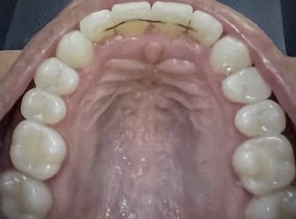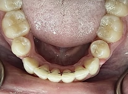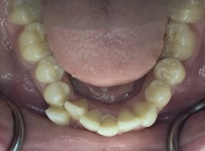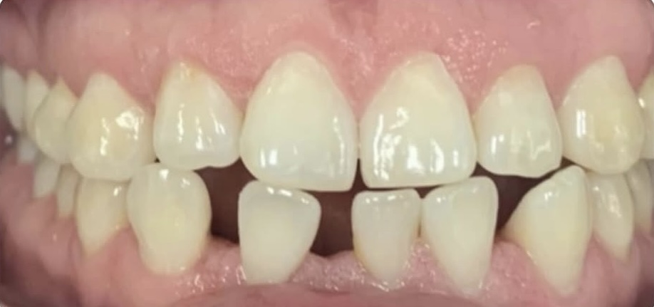 Spacing, missing lower anterior tooth with an open bite. Comprehensive orthodontic treatment with lingual permanent retainer. Restored the patient's smile and corrected the bite.