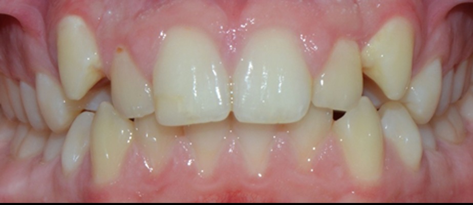 A 14-year-old female with an unpleasant smile, severe overjet, and spacing. We gave her her confidence back after comprehensive orthodontic treatment.
