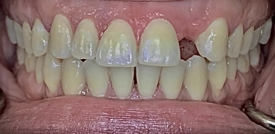 A young female in her mid 30s presented to the office with a flipper restoring her missing front tooth. We were able to place a same-day implant with a temp crown. Happy patient who can smile again.